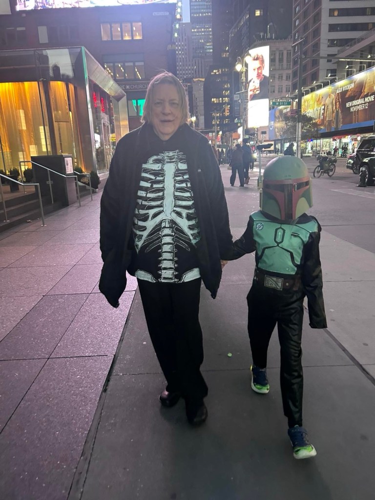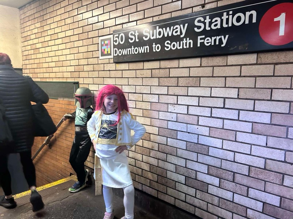 IT WAS HALLOWEEN THE SAME WEEKEND AS THE MARATHON. HERE THE GRANDS ARE HEADING TO THE SUBWAY ON THEIR WAS TO TRICK-OR-TREAT.
