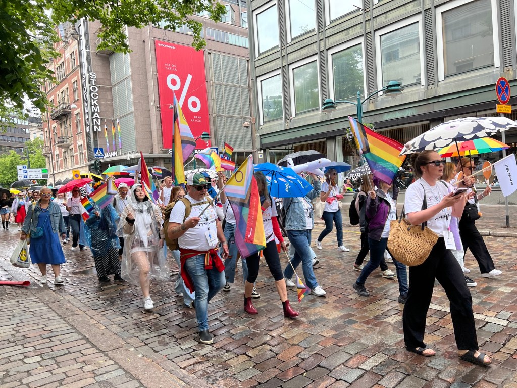 WE WERE WARNED THAT STREET TRAFFIC WOULD BE SLOW TODAY DUE TO A PRIDE PARADE. I ESTIMATE HALF OF HELSINKI’S UNDER AGE 30 POPULATION SHOWED UP AND MARCHED.