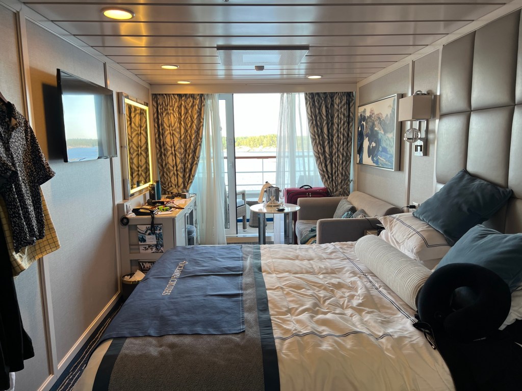 THIS IS OUR CABIN ON THE OCEANIA SIENA AND WILL BE HOME FOR THE NEXT 4 WEEKS.