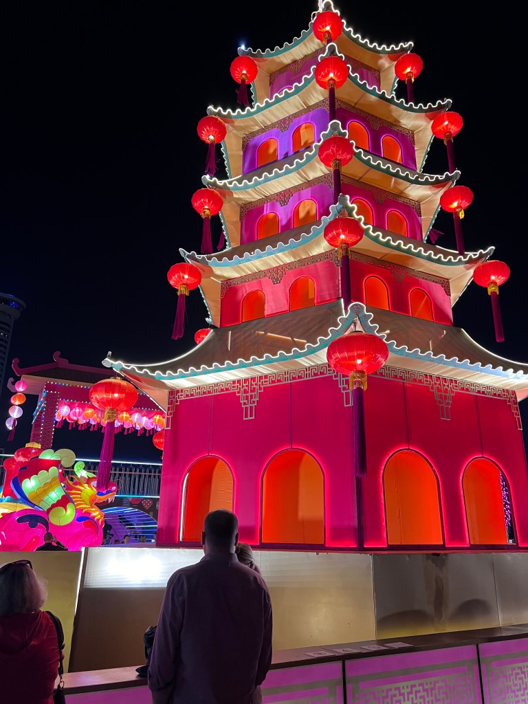 OUR CRUISE COINCIDES WITH THE LUNAR NEW YEAR CELEBRATED ALL OVER. THIS IS THE YEAR OF THE DRAGON. THERE WERE LARGE DISPLAYS OF FIREWORKS AND RED LANTERNS